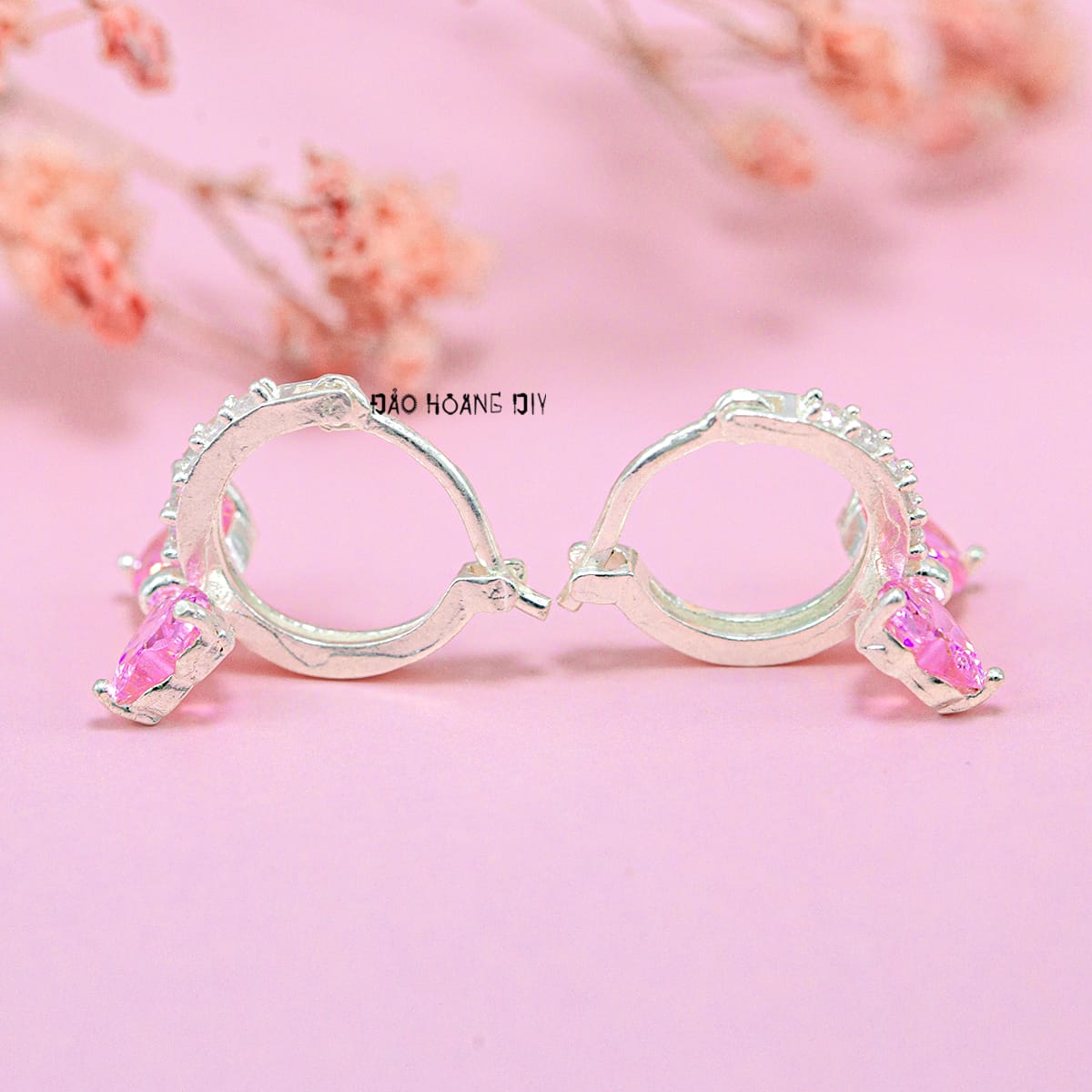 1. Bông Tai Bạc Cho Bé Kiểu Bật Nơ Đá Hồng To Nổi Bật làm bằng chất liệu gì?