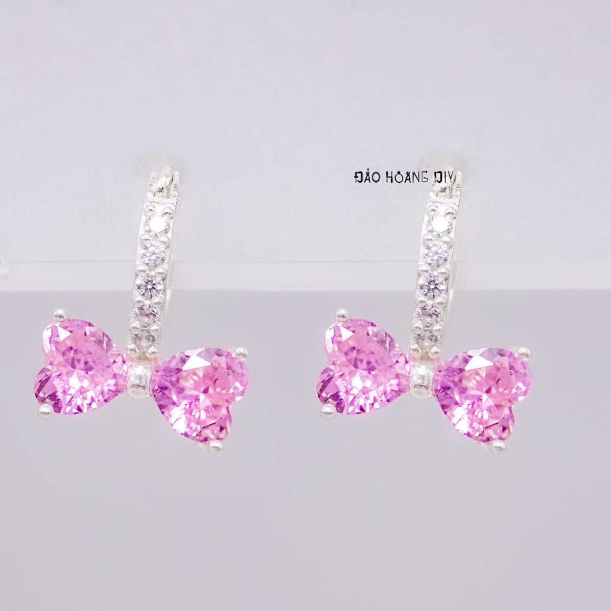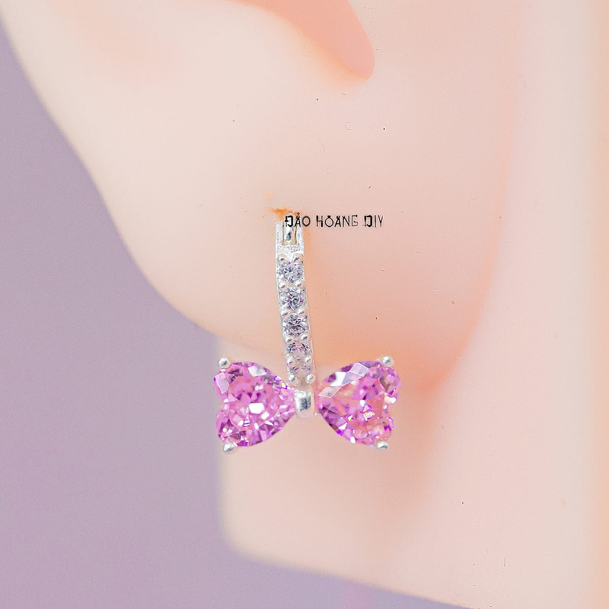 Giải Mã Sức hút của Bông Tai Bạc Cho Bé Kiểu Bật Nơ Đá Hồng To Nổi Bật