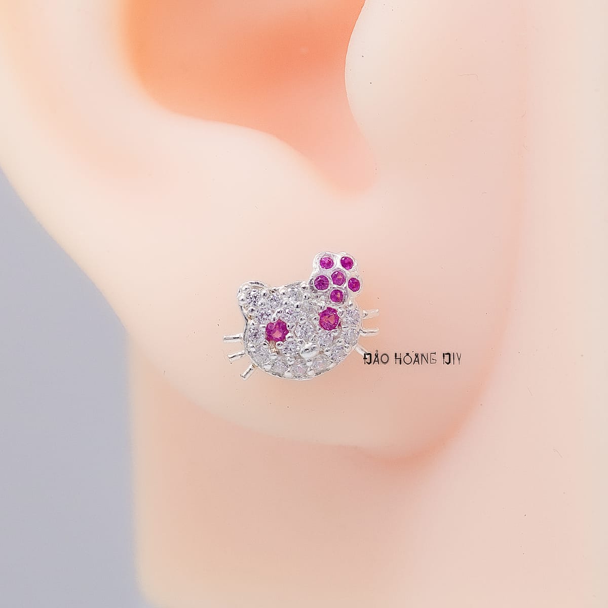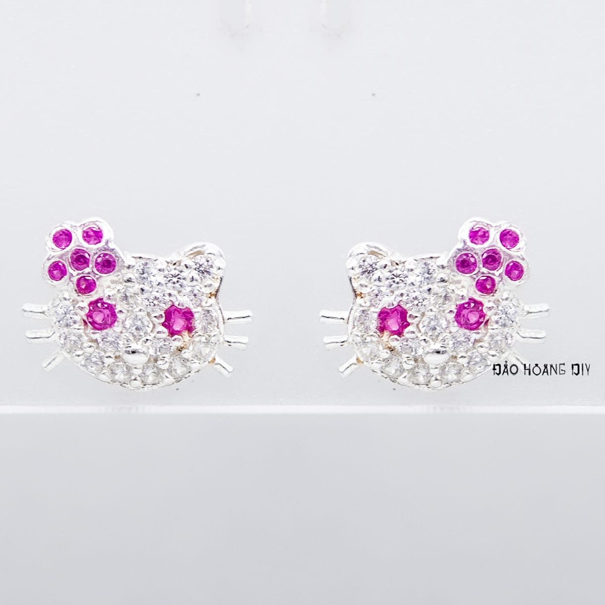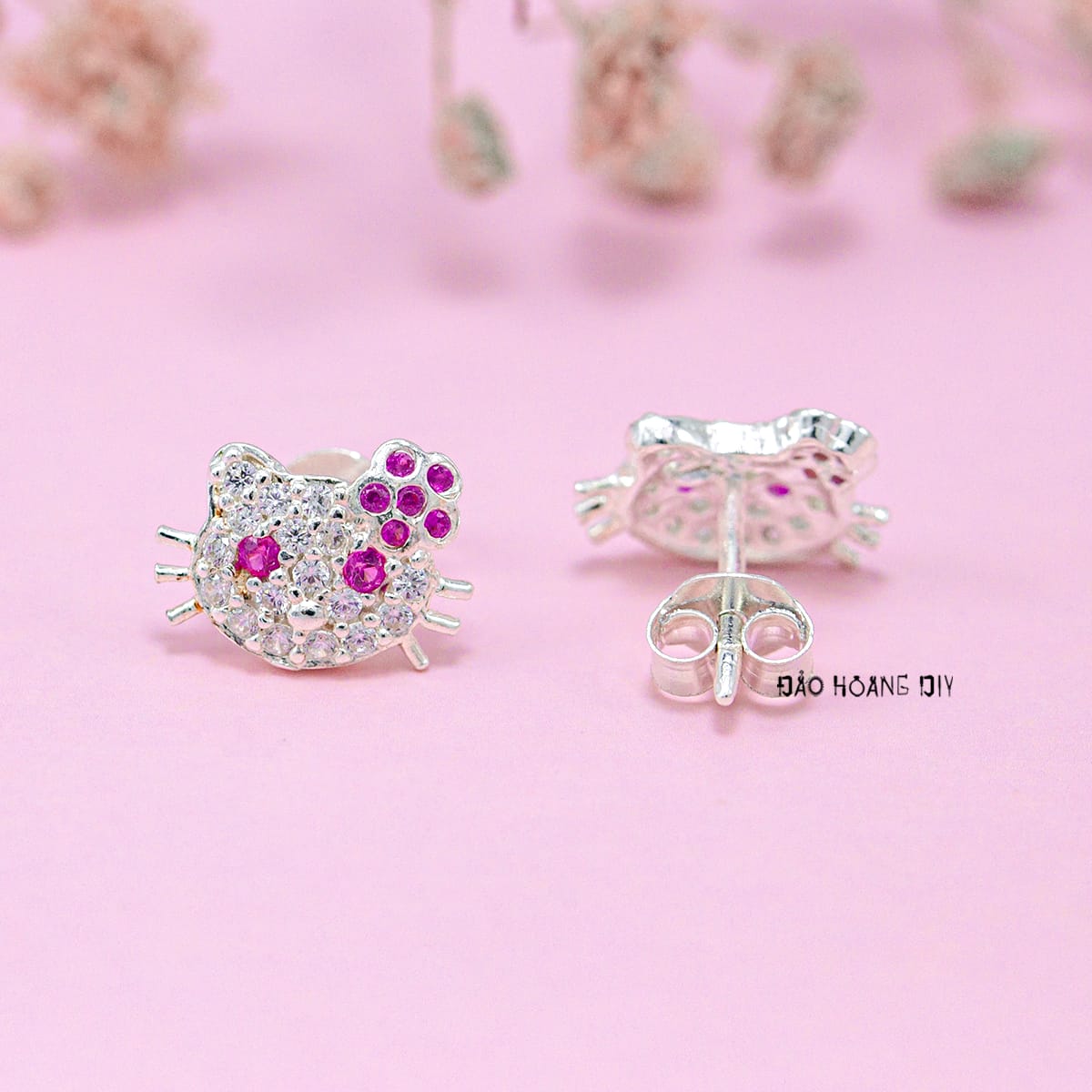 1. Bông Tai Bạc Cho Bé Kiểu Nụ Mặt Mèo Kitty làm bằng chất liệu gì?