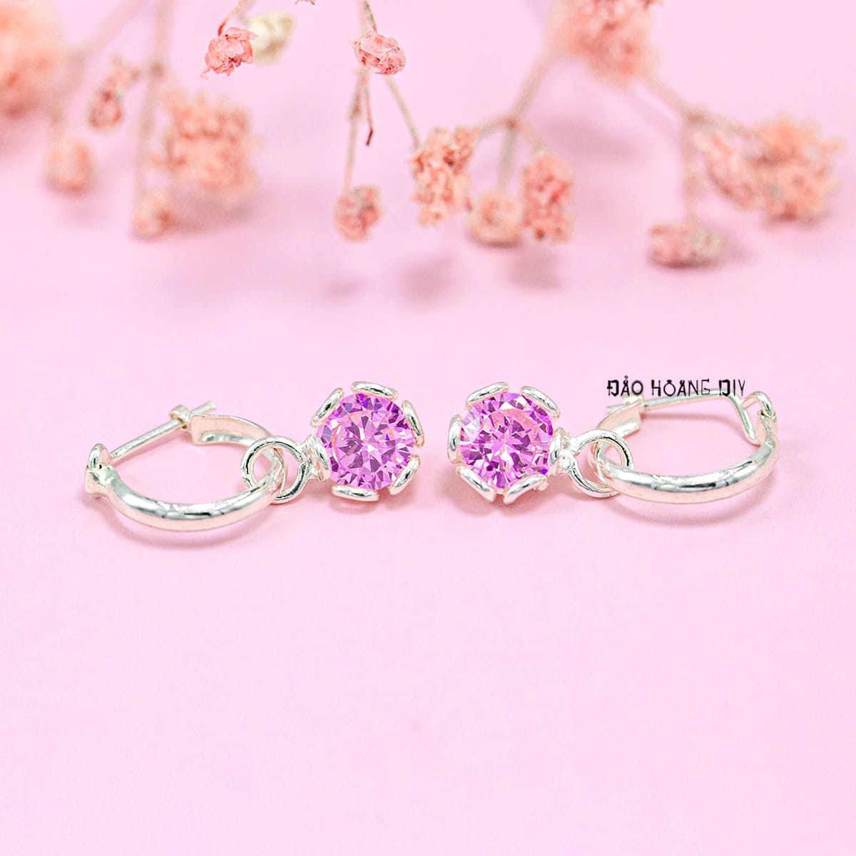 1. Bông Tai Bạc Nữ Khong Tròn Hoa Đá Hồng 6.5 Ly Trẻ Trung làm bằng chất liệu gì?