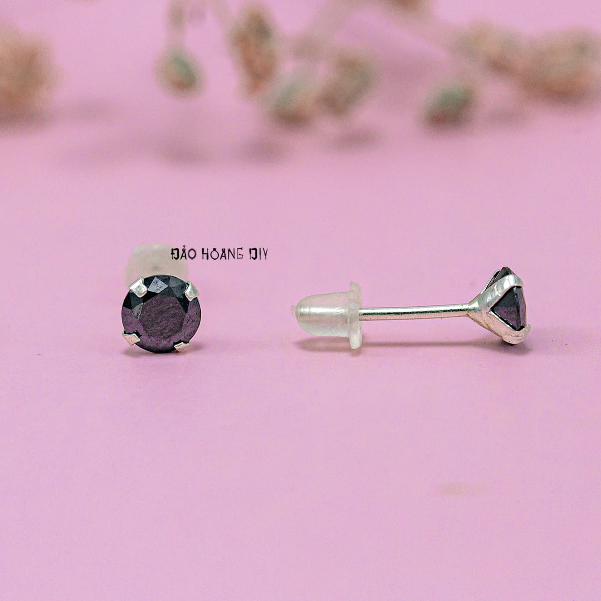 1. Bông Tai Bạc Nữ Kiểu Nụ Đá Đen Tròn Nhỏ Xinh làm bằng chất liệu gì?