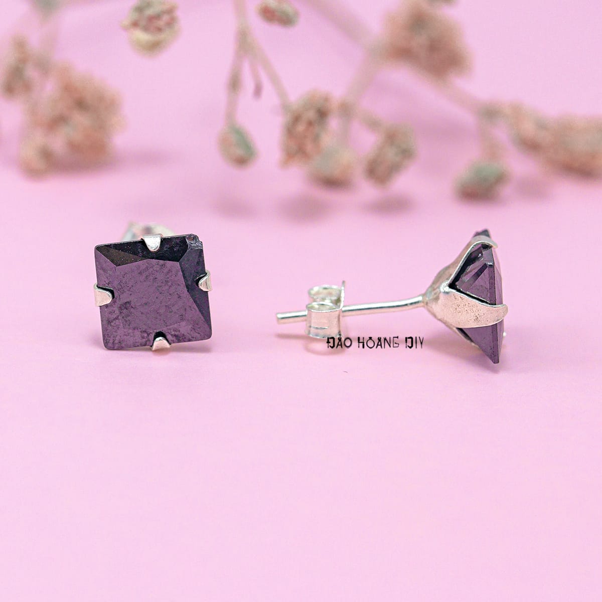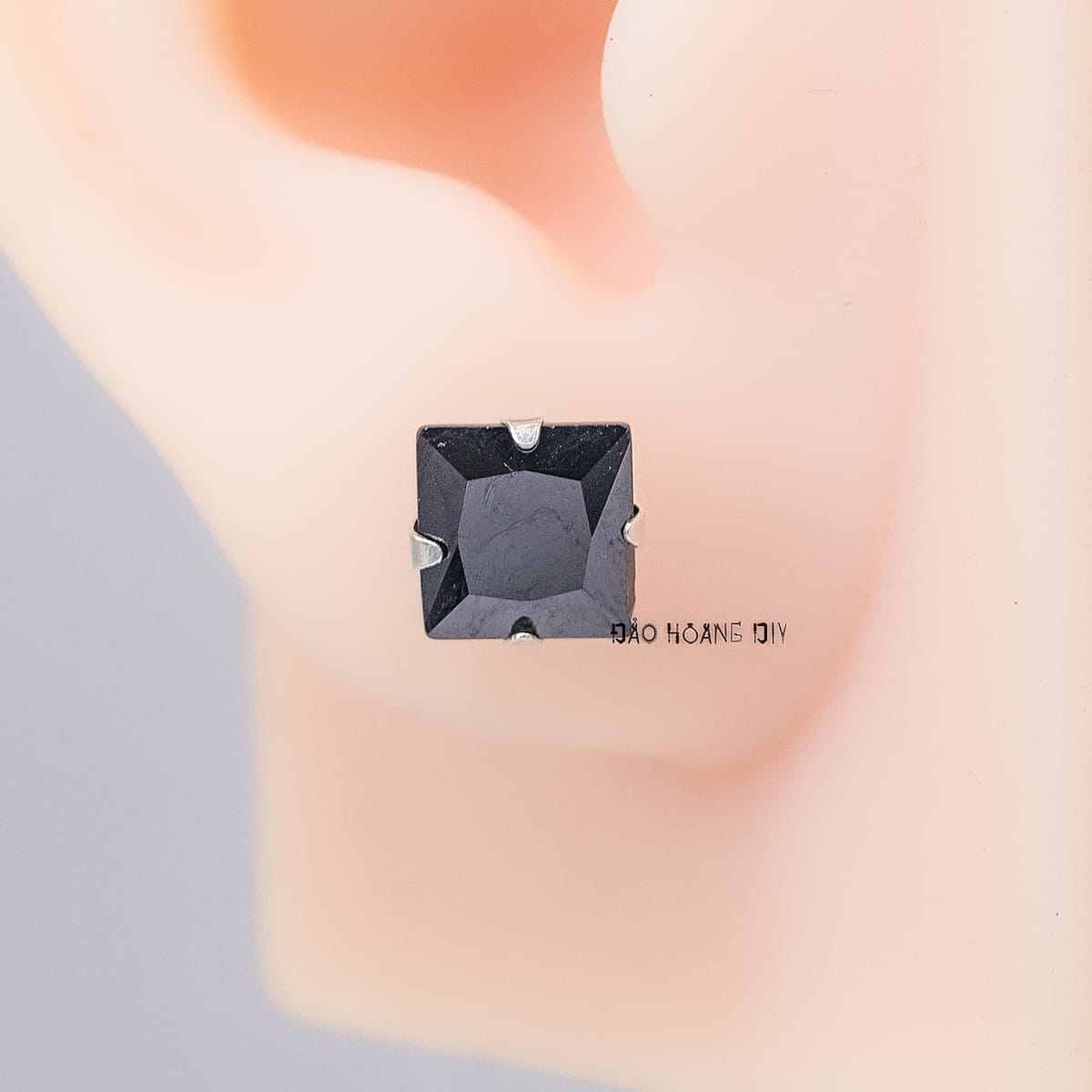1. Bông Tai Bạc Nữ Kiểu Nụ Đá Đen Vuông To Sang Trọng làm bằng chất liệu gì?