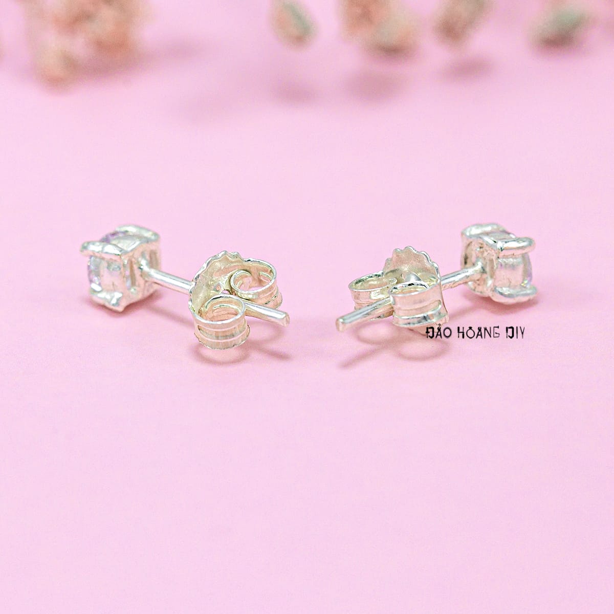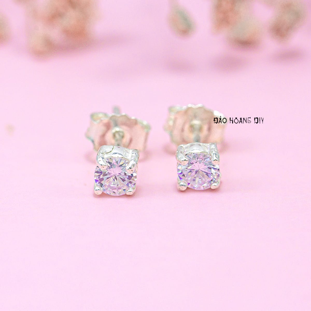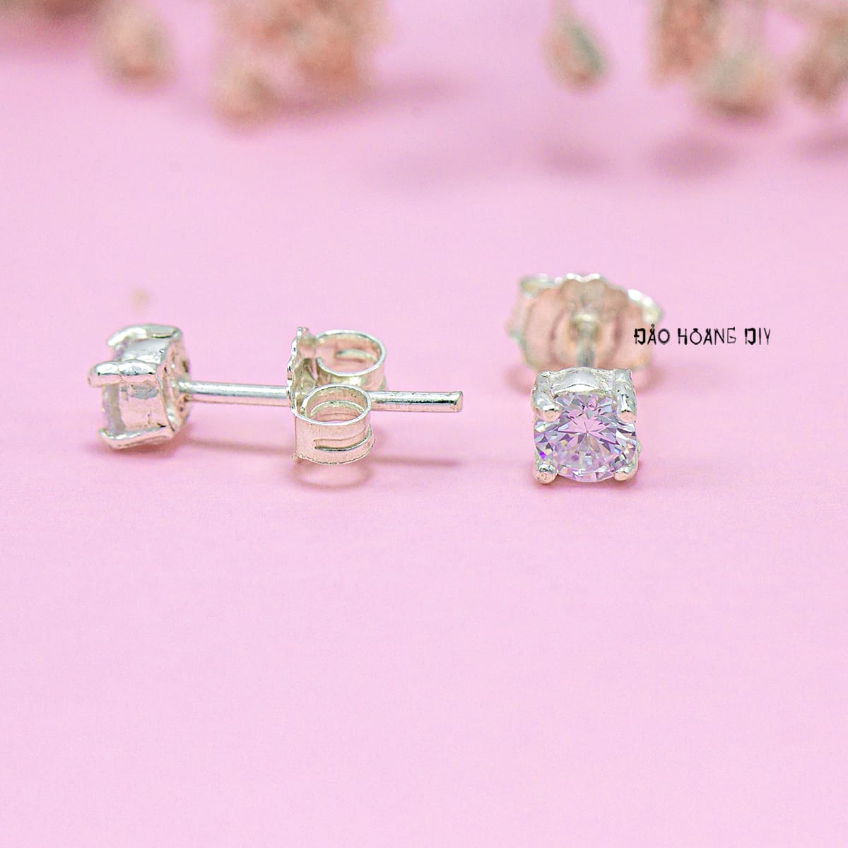 1. Bông Tai Bạc Nữ Kiểu Nụ Đá Trắng Tròn Kiểu Basic làm bằng chất liệu gì?