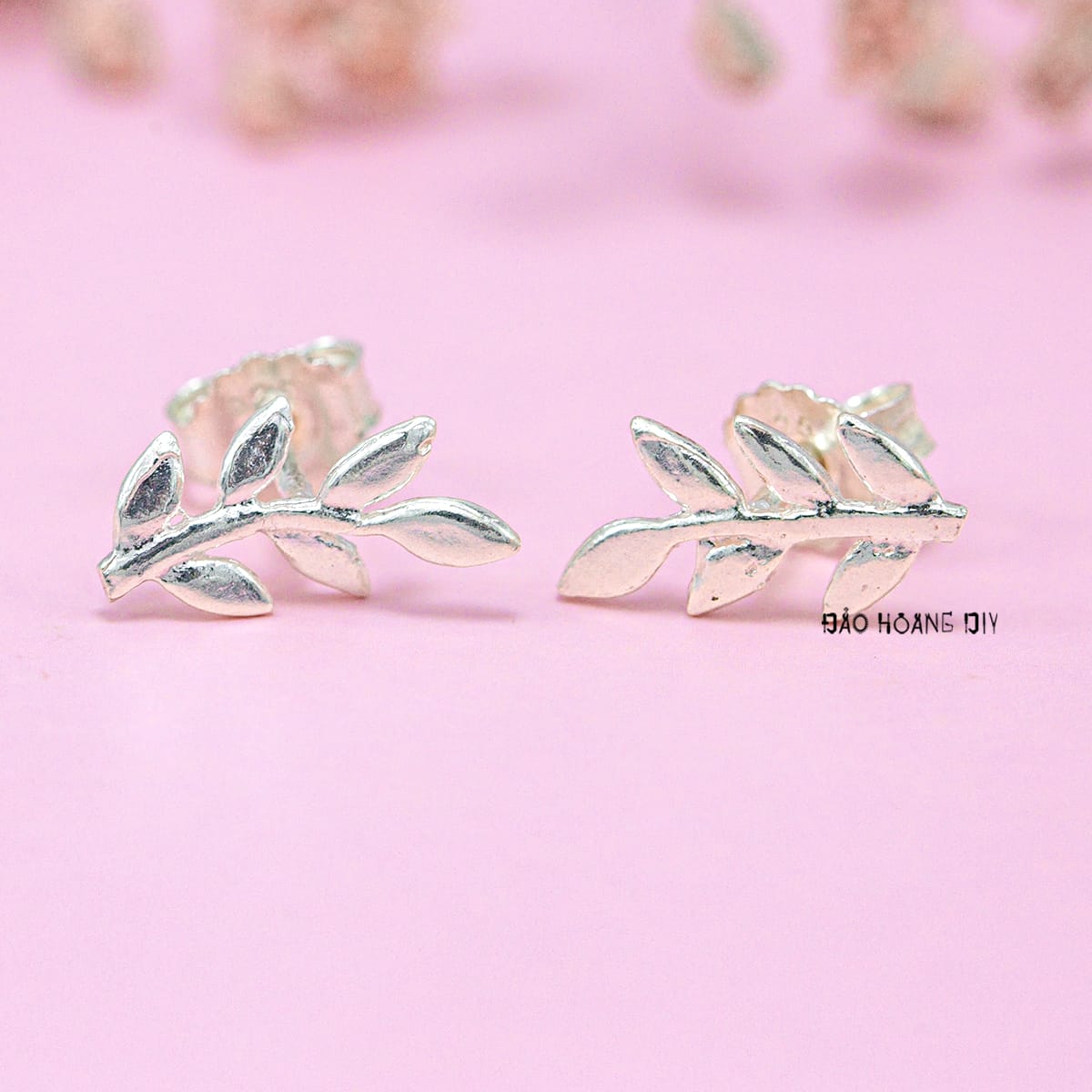 Giải Mã Sức hút của Bông Tai Bạc Nữ Kiểu Nụ Hình Cành Lá Trơn Đơn Giản Đẹp