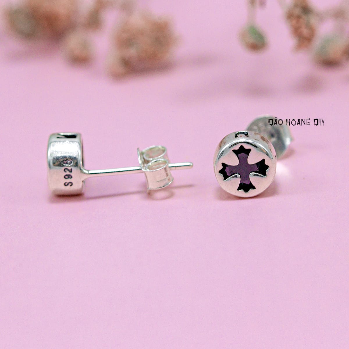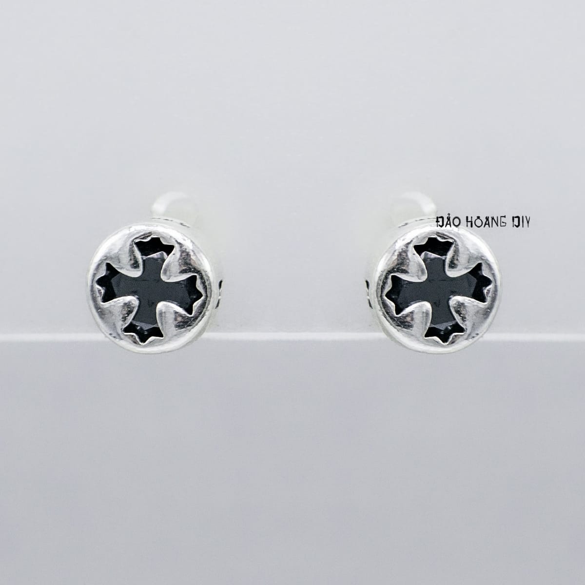 1. Bông Tai Bạc Nữ S925 Kiểu Nụ Chữ Thập Đá Đen Sang Trọng làm bằng chất liệu gì?