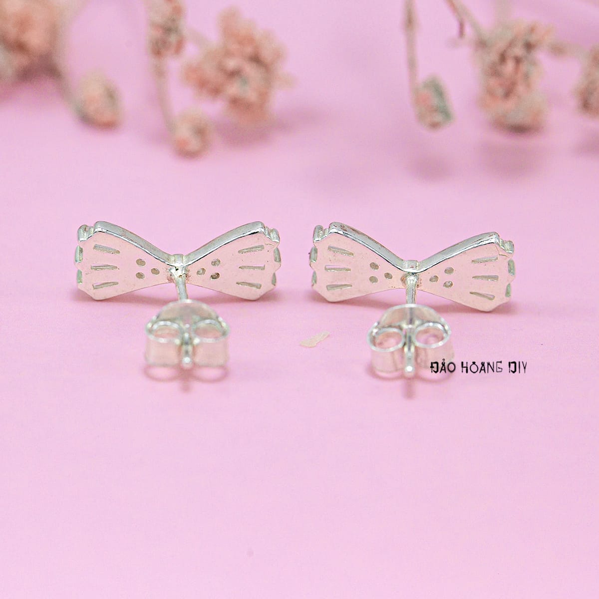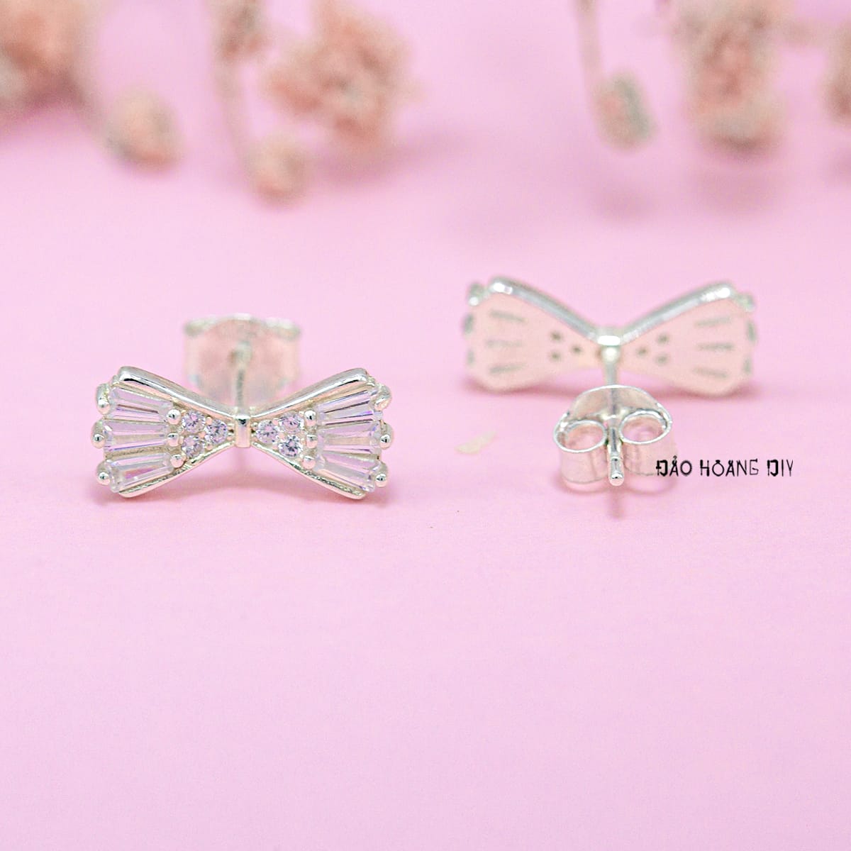 1. Bông Tai Bạc Nữ S925 Kiểu Nụ Hình Chiếc Nơ 2 Loại Đá Xinh Xắn làm bằng chất liệu gì?