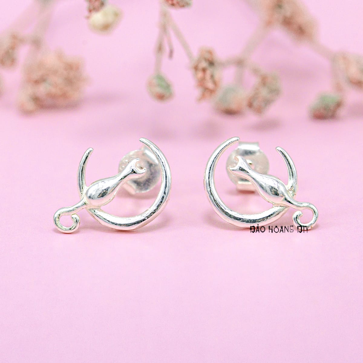 1. Bông Tai Bạc Nữ S925 Kiểu Nụ Hình Con Mèo Trên Cung Trăng làm bằng chất liệu gì?