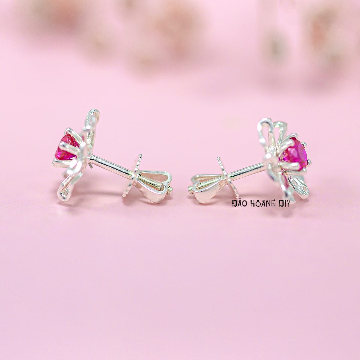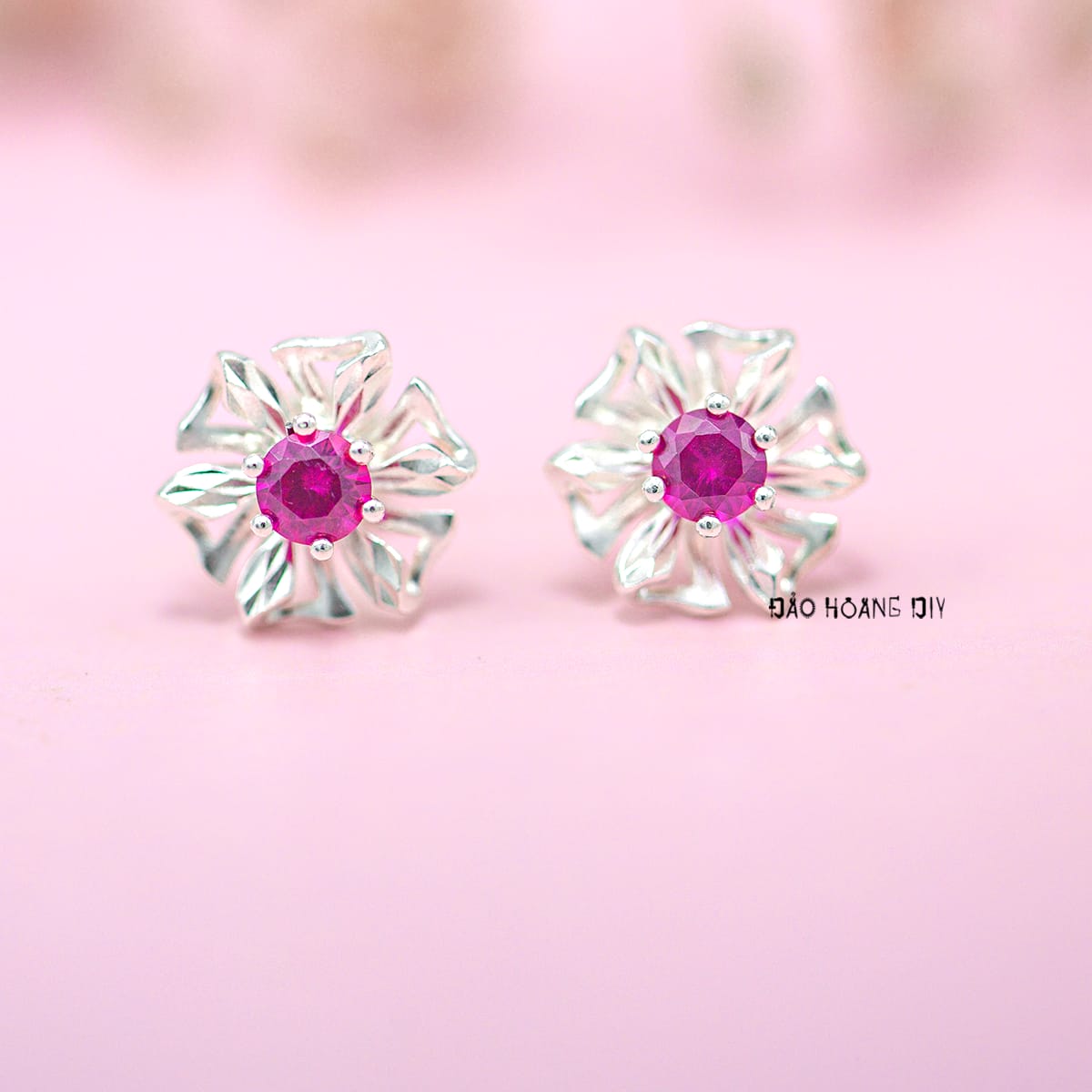 Giải Mã Sức hút của Bông Tai Bạc Nữ S950 Kiểu Nụ Hình Bông Hoa Cánh Cong Nhụy Hồng