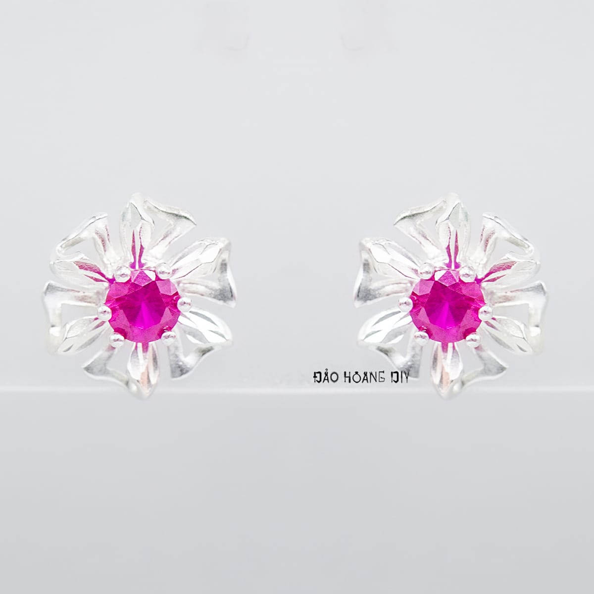 1. Bông Tai Bạc Nữ S950 Kiểu Nụ Hình Bông Hoa Cánh Cong Nhụy Hồng làm bằng chất liệu gì?