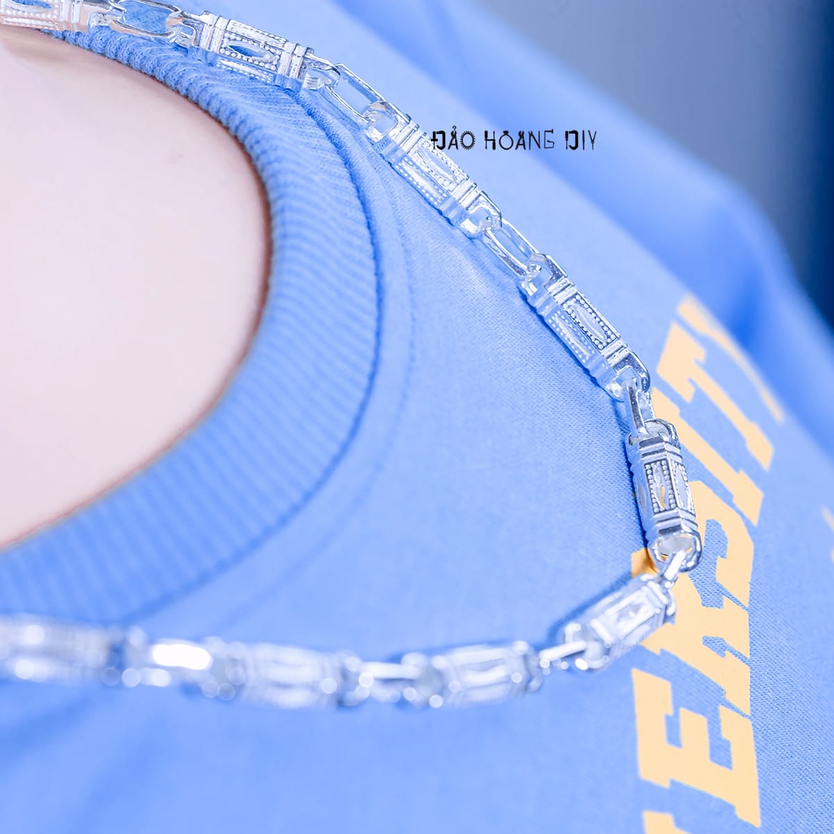 Dây chuyền có kiểu dáng Dạng dây đúc Đa dạng nhiều tạo hình cho từng mắt dây. Vô cùng ấn tượng, khỏe khoắn, trẻ trung và nổi bật lại siêu chắc chắn dễ làm sáng đánh bóng.