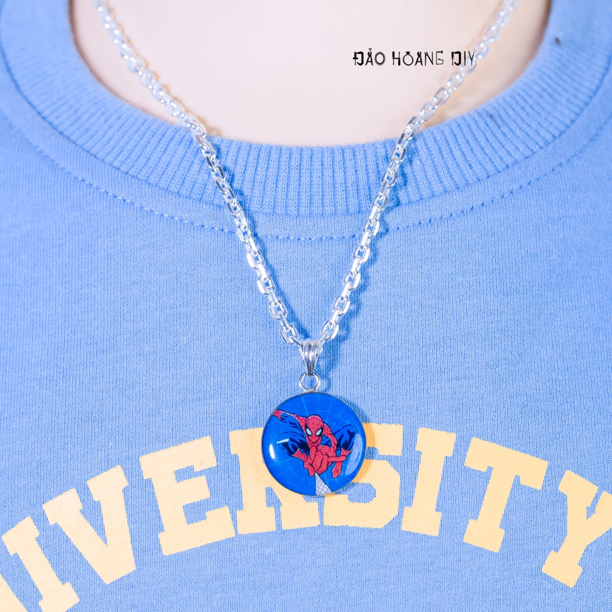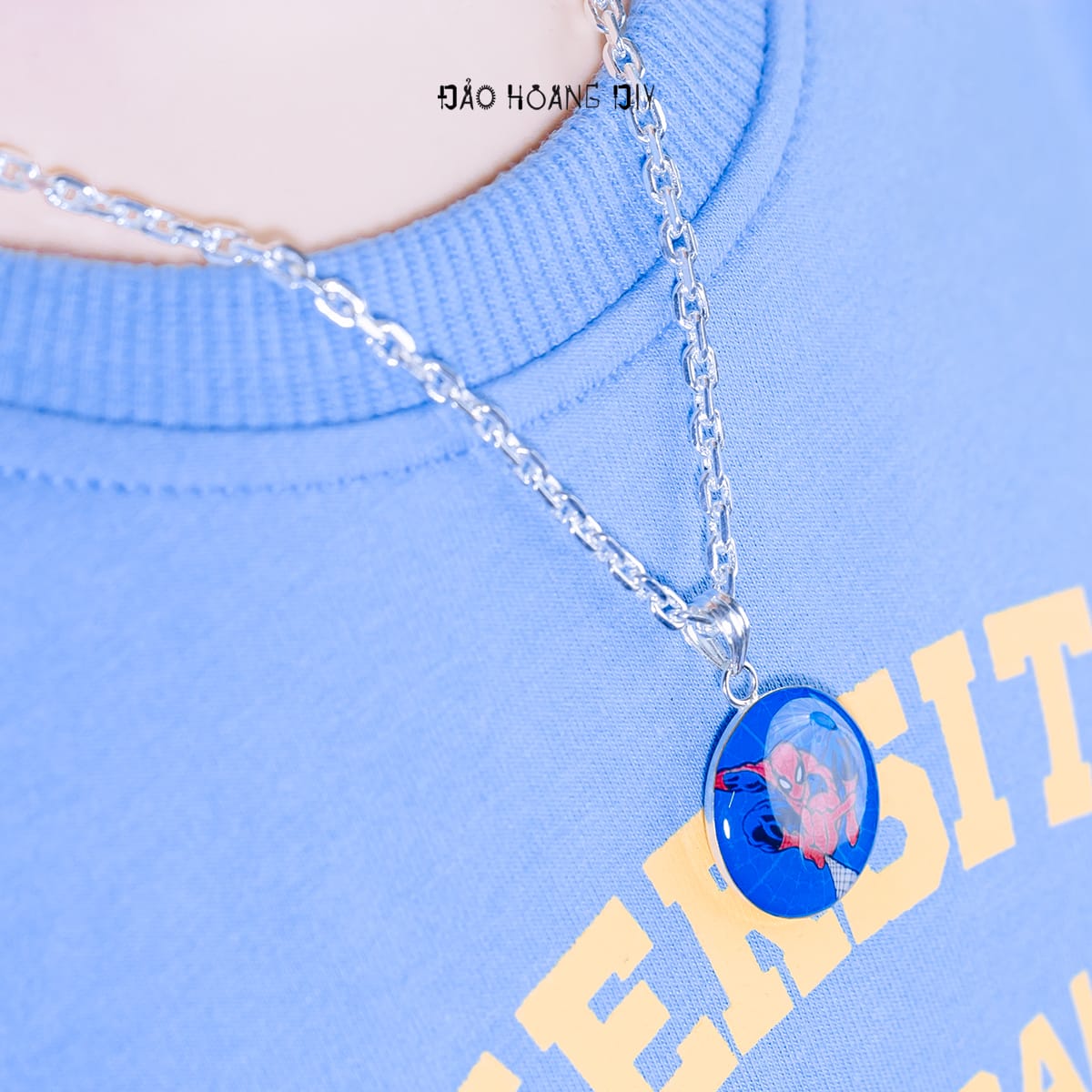 Thiết kế của dây chuyền hình kiểu dây xích vuông chắc chắn dầy dặn, mặt người nhện nổi bật tinh nghịch