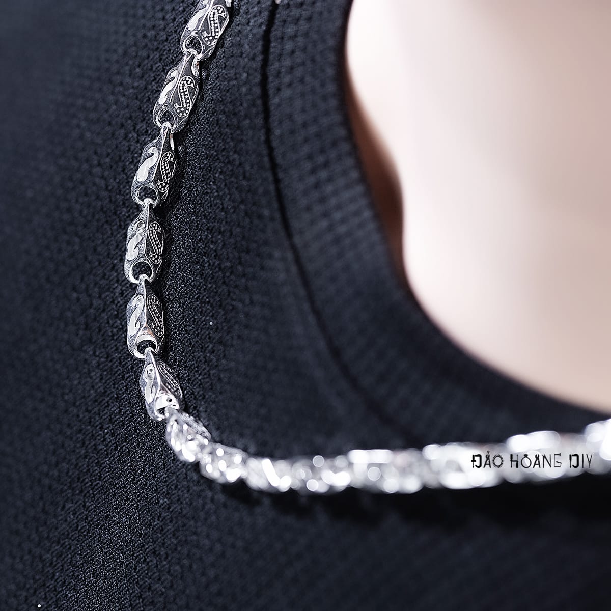Dây chuyền có kiểu dáng Dạng dây đúc Đa dạng nhiều tạo hình cho từng mắt dây. Vô cùng ấn tượng, khỏe khoắn, trẻ trung và nổi bật lại siêu chắc chắn dễ làm sáng đánh bóng.