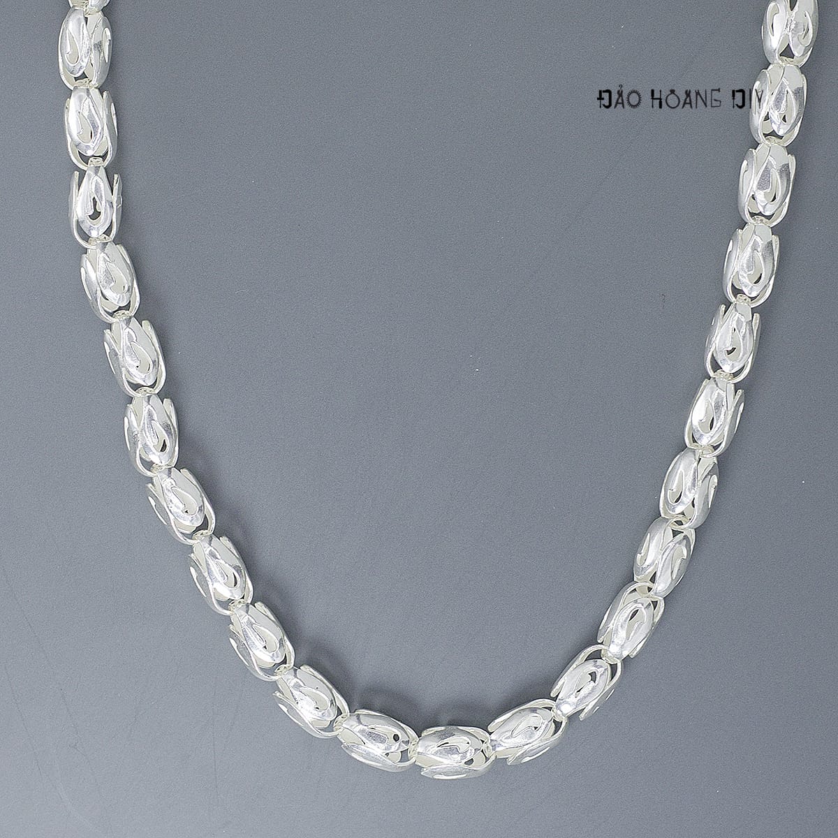 Dây chuyền được làm từ chất liệu nguyên bạc ta không phủ bất kỳ lớp si mạ nào vì vậy bạc có thể tiếp xúc trực tiếp với da, tương tác tốt với cơ thể người đeo. Có thể dùng để đánh cảm đánh gió cực tốt cho sức khỏe. Bạc ta màu trắng đục đặc trưng, bền màu, hạn chế xỉn đen và có một tính chất vượt trội là vô cùng dễ dàng làm sáng, dễ đánh bóng, dễ dàng chế tác, sửa chữa và gia công. Vì vậy khi sản phẩm của bạn được làm từ chất liệu bạc ta thì xin chúc mừng bạn sẽ hoàn toàn yên tâm sở hữu một món trang sức vô cùng quý giá.