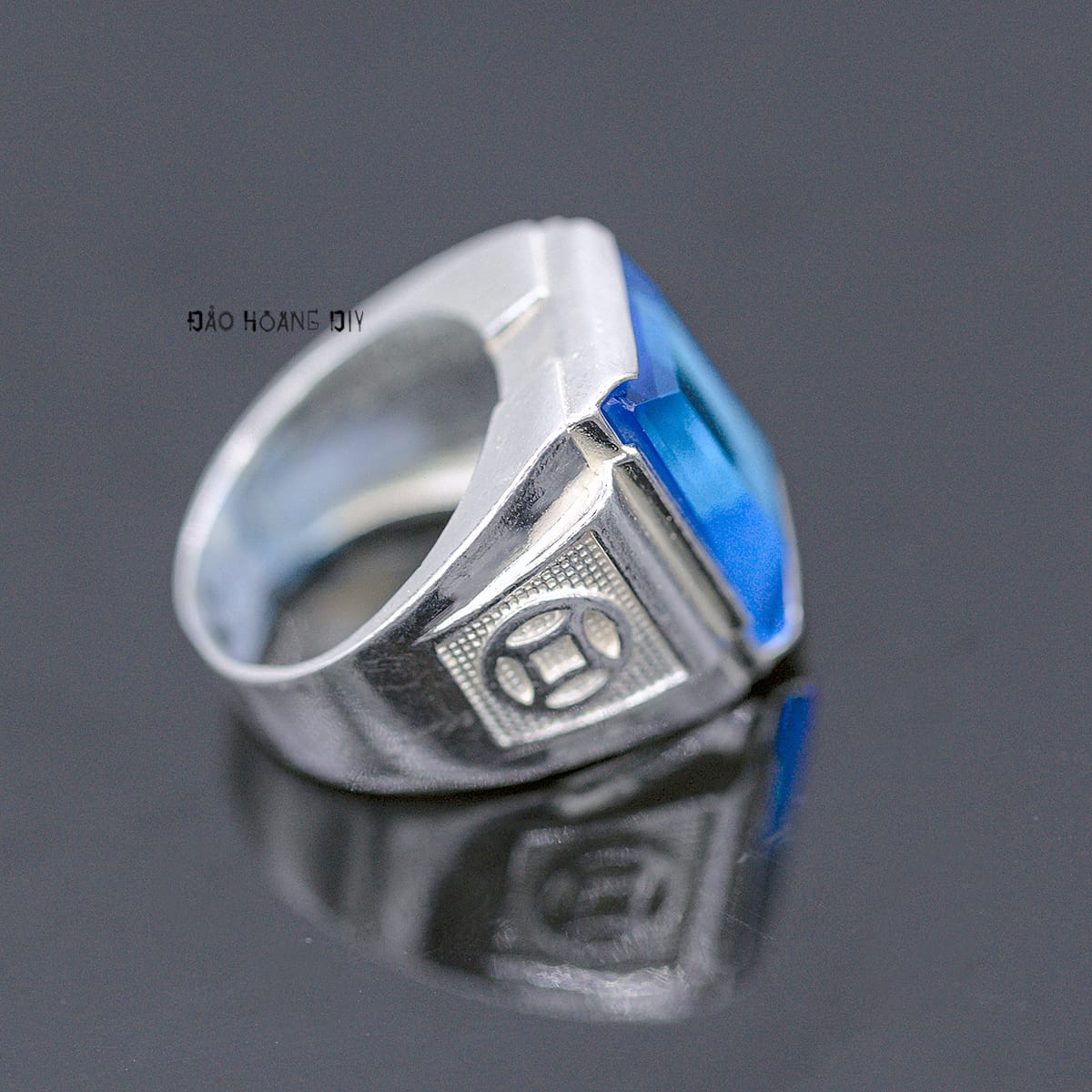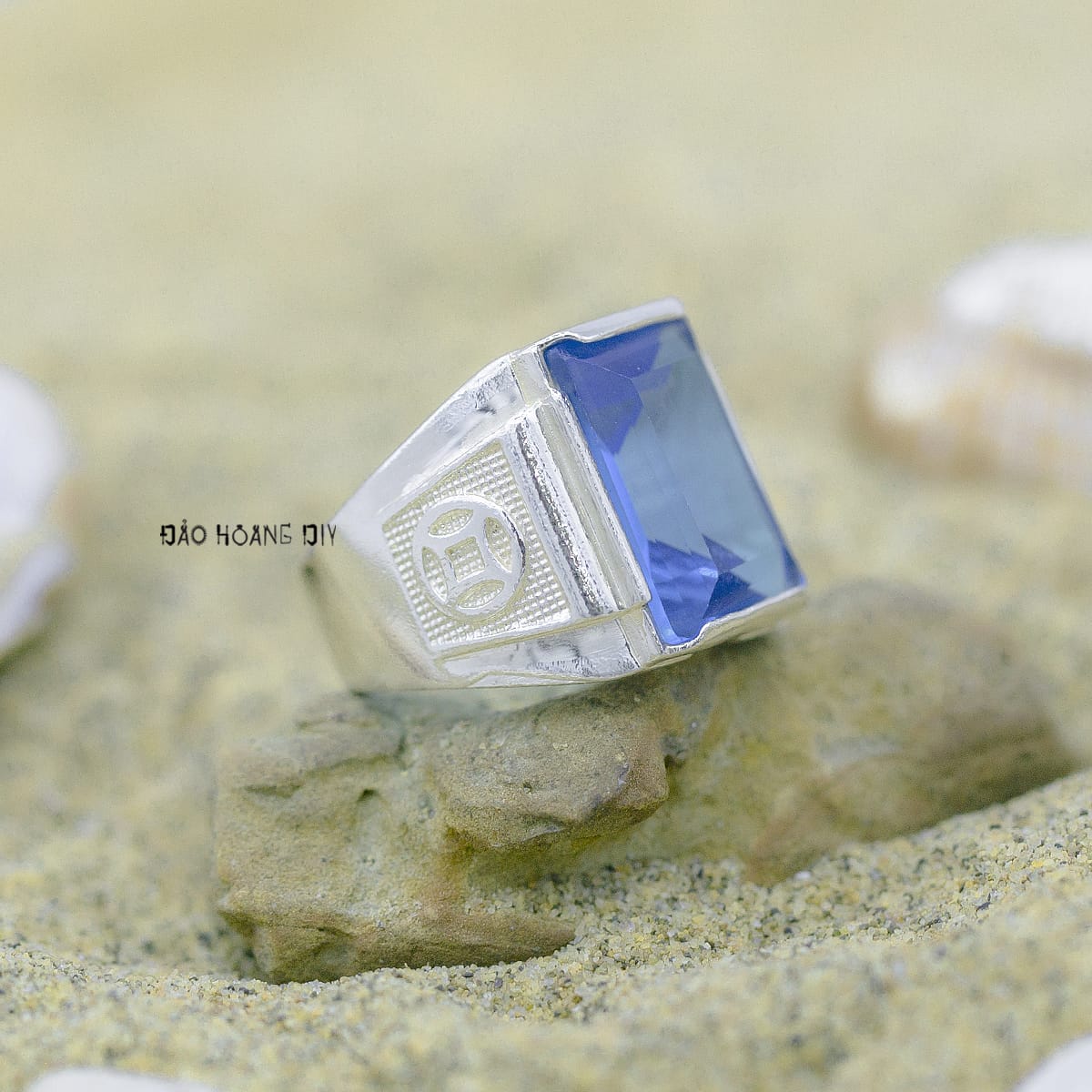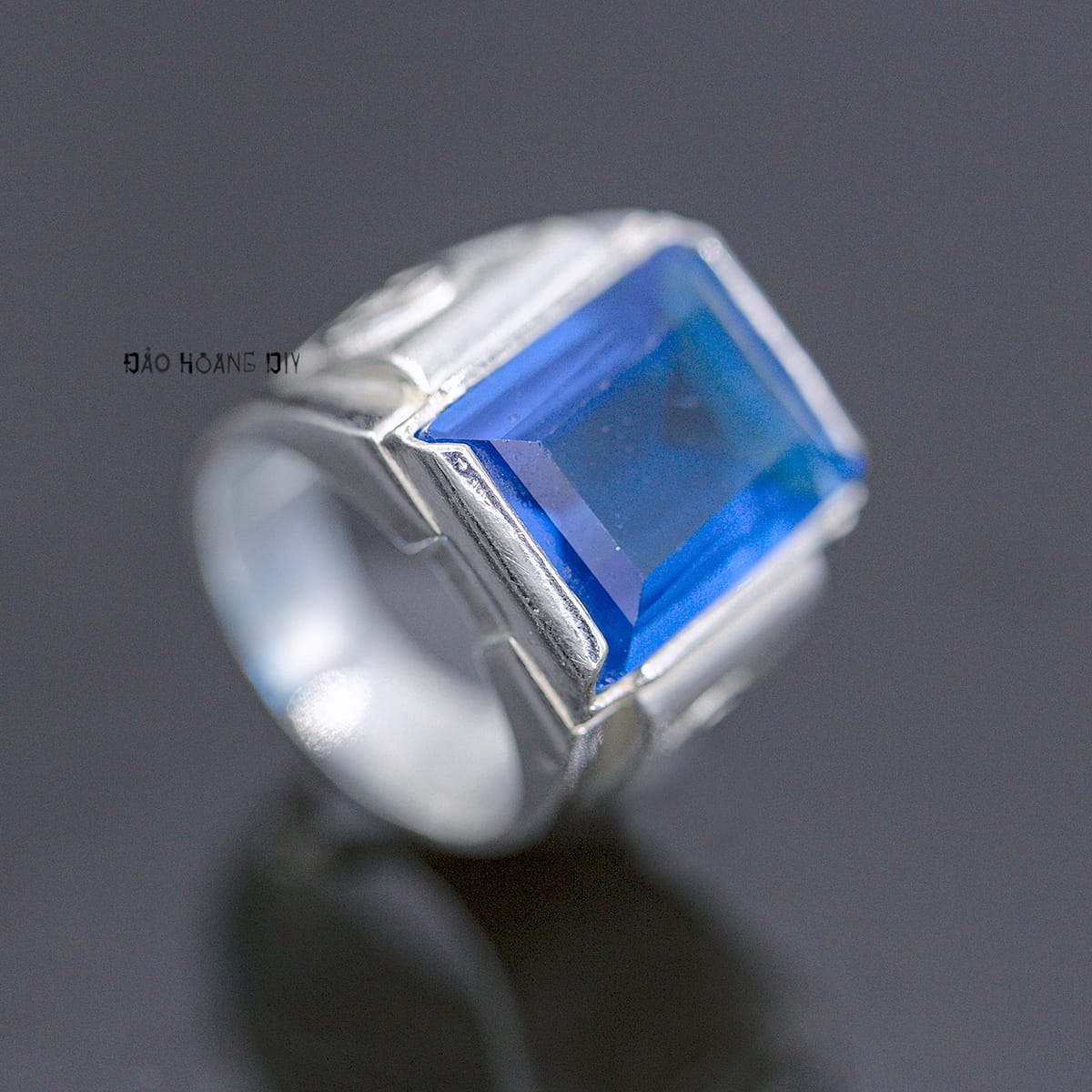 Thiết kế của nhẫn hình đá xanh dương hình chữ nhật nam tính mạnh mẽ