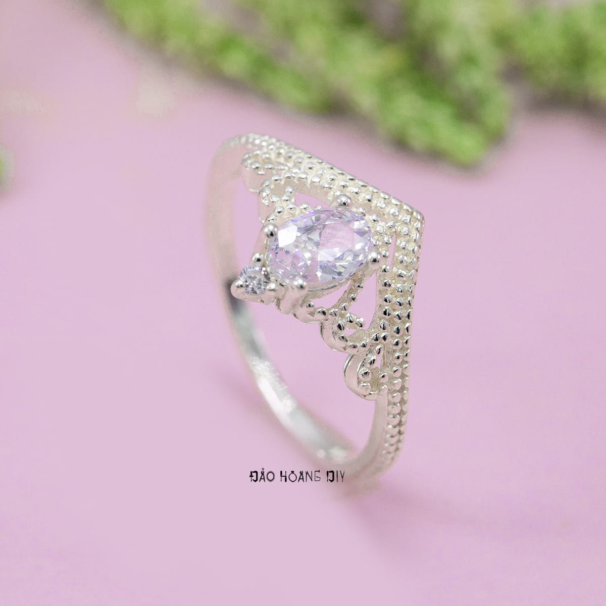 Thiết kế của mặt nhẫn hình thiết kế vương miện kiểu công chúa cách điệu đính đá