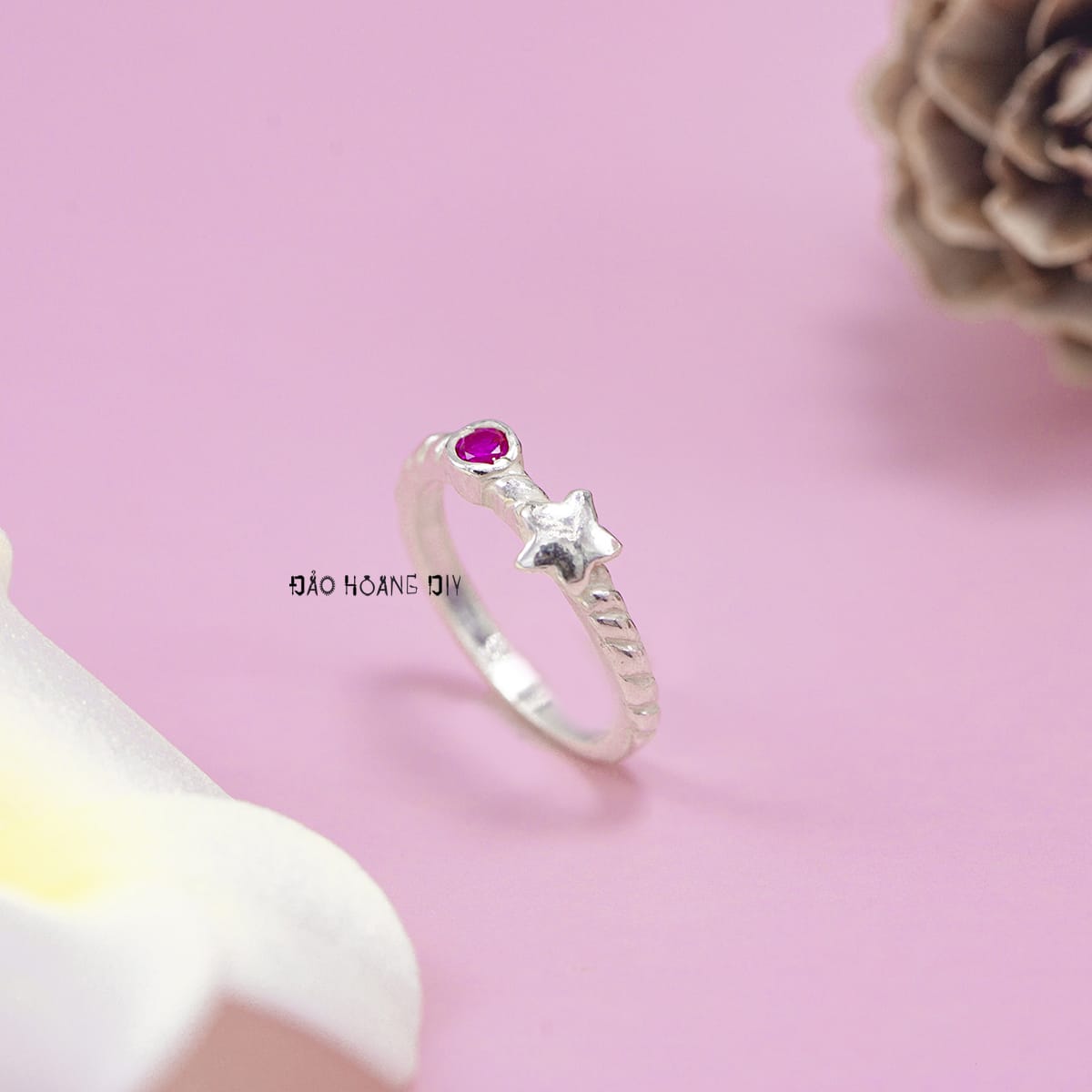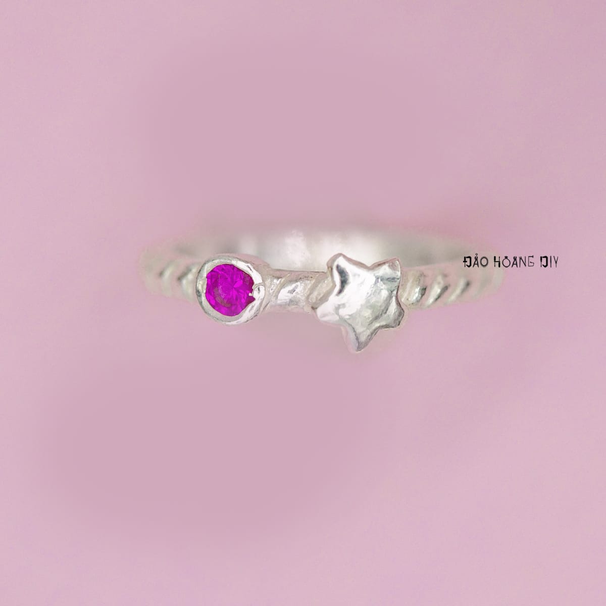 Thiết kế của mặt nhẫn hình hình ngôi sao và viên đá hồng xinh xắn